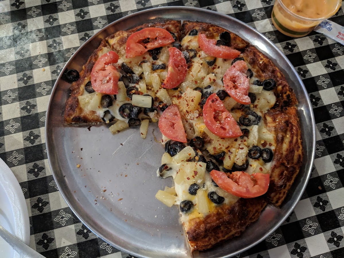 A unique old school pizza restaurant. Great pizza and garlic bread. It's easy to get to when driving in or out of Petaluma. 5-star also for their fun building painted all in pink! So fun!